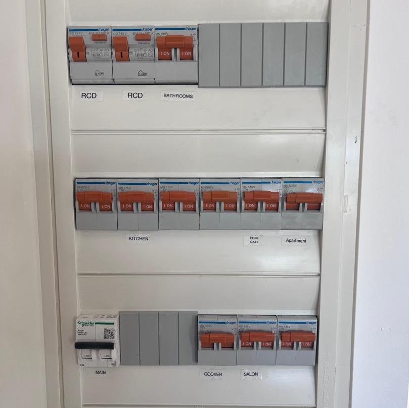 He also had a very old electricity consumer unit – so much it was no longer compliant under REBT regulations in Spain. We removed it and installed a brand new consumer unit with all materials up to date and with safer protections, so that both the client and us both have peace of mind that the home is protected correctly.